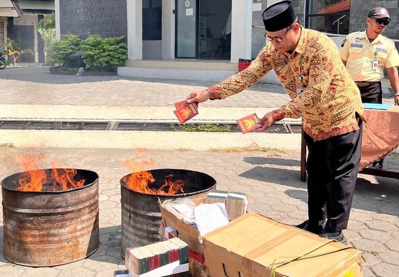 Kendal (Humas) – Kantor Kementerian Agama (Kankemenag) Kabupaten Kendal menggelar pemusnahan Barang Milik Negara (BMN) berupa buku nikah dan duplikat nikah, Kamis (26/9/2024) di halaman Aula Koperasi Hikmah Kankemenag Kendal.