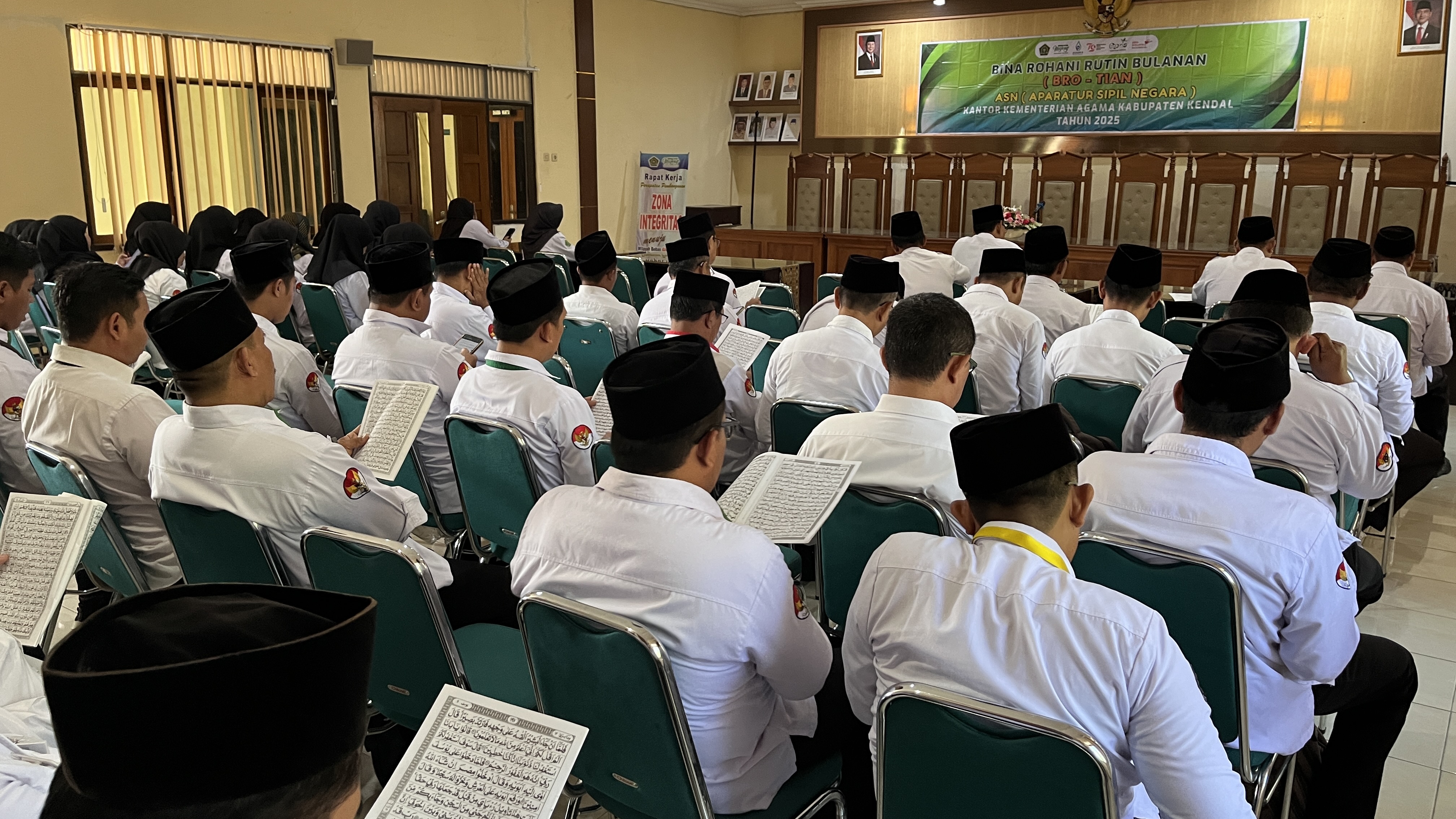 Kegiatan Bro-tian yang dihadiri para pejabat struktural seperti Kasi Pendidikan Diniyah dan Pondok Pesantren (PD Pontren), Kasi Bimas Islam, Penyelenggara Zakat dan Wakaf serta para ASN di lingkungan Kantor Kemenag Kendal. Tak hanya menjadi ruang penguatan spiritual ASN, tetapi juga momentum koordinasi untuk mendukung program prioritas nasional di bidang pendidikan keagamaan.
