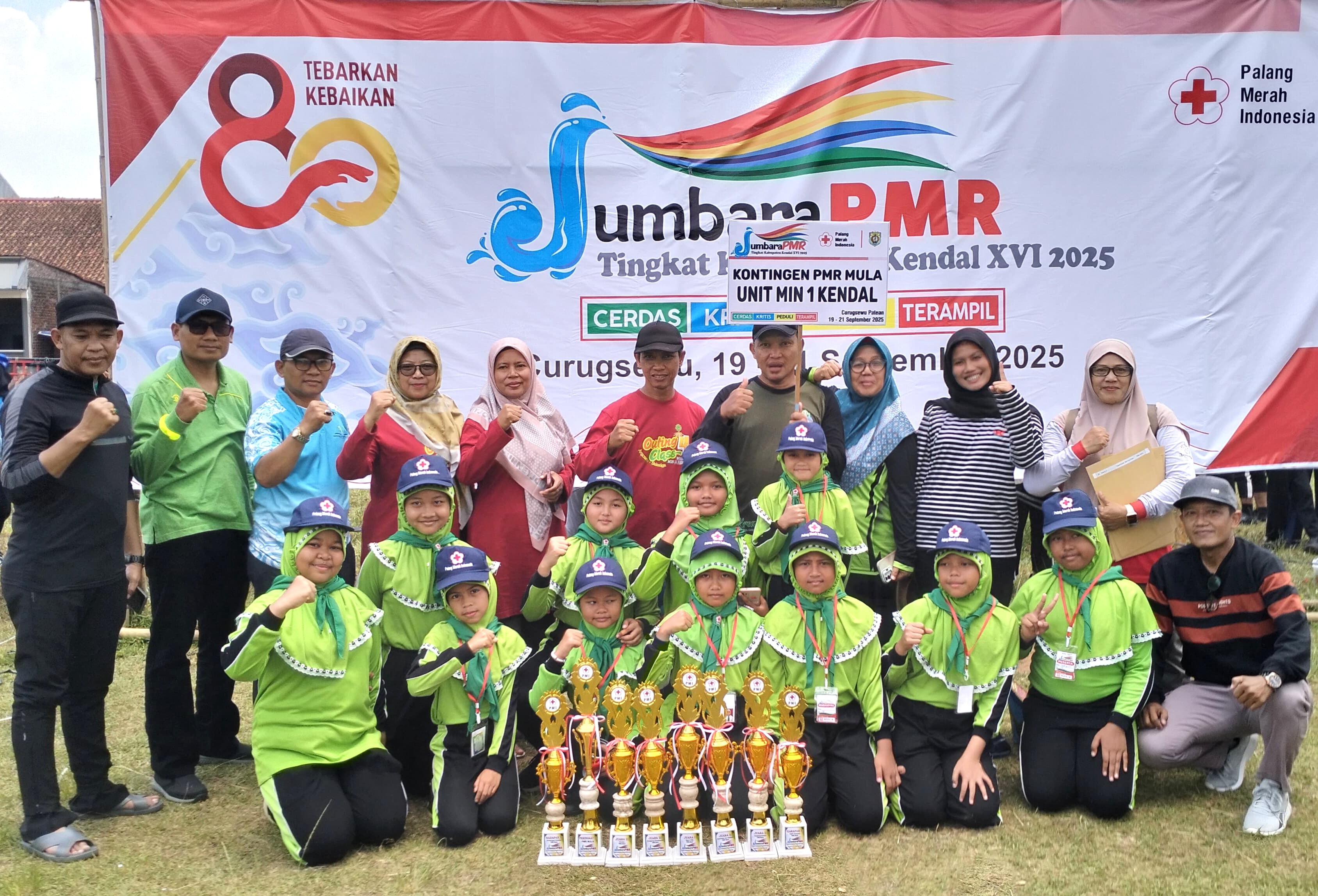 Kendal – PMR MIN 1 Kendal mengukir kisah sukses pada Jumbara PMR XVI Kabupaten Kendal yang digelar pada 19 – 21 September 2025 di Curugsewu. Raihan prestasinya ditunjukkan pada perolehan Juara 1 Galeri, Juara 3 Tendaku, Juara 3 Edutainment, Juara Harapan 2 Deville karnaval, Juara Harapan Kedua Pertolongan Pertama, Juara 2 Kesehatan dan Sanitasi, dan Juara 2 Kepalangmerahan (21/9/2025).