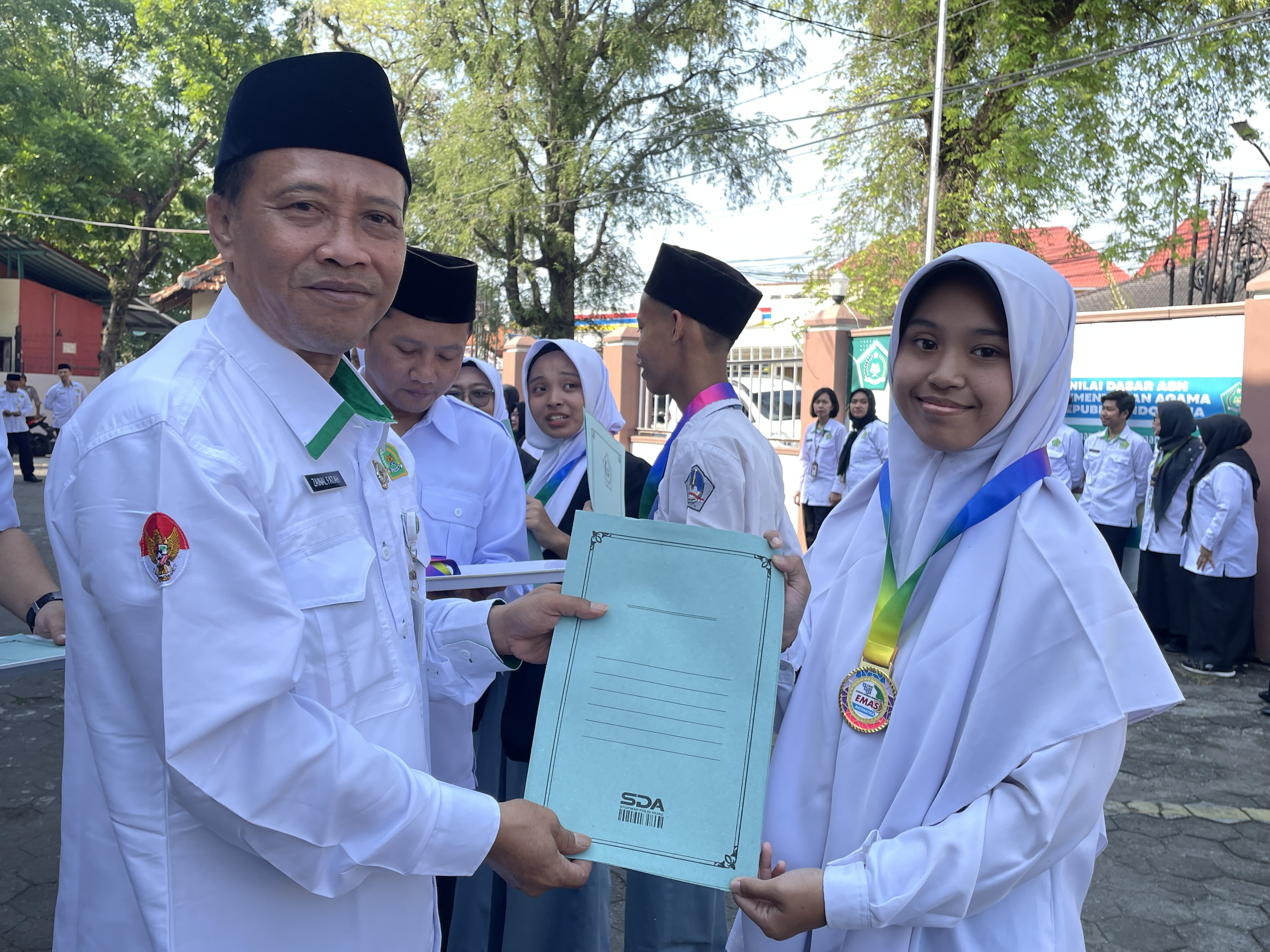 Kendal (Humas) – Kantor Kementerian Agama Kabupaten Kendal menggelar penyerahan medali bagi para pemenang Olimpiade Madrasah Indonesia (OMI) 2025 tingkat Kabupaten pada Senin (29/9/2025) di halaman Kankemenag Kendal. Prosesi penyerahan dilakukan langsung oleh Kepala Kantor Kemenag Kendal, Zainal Fatah.