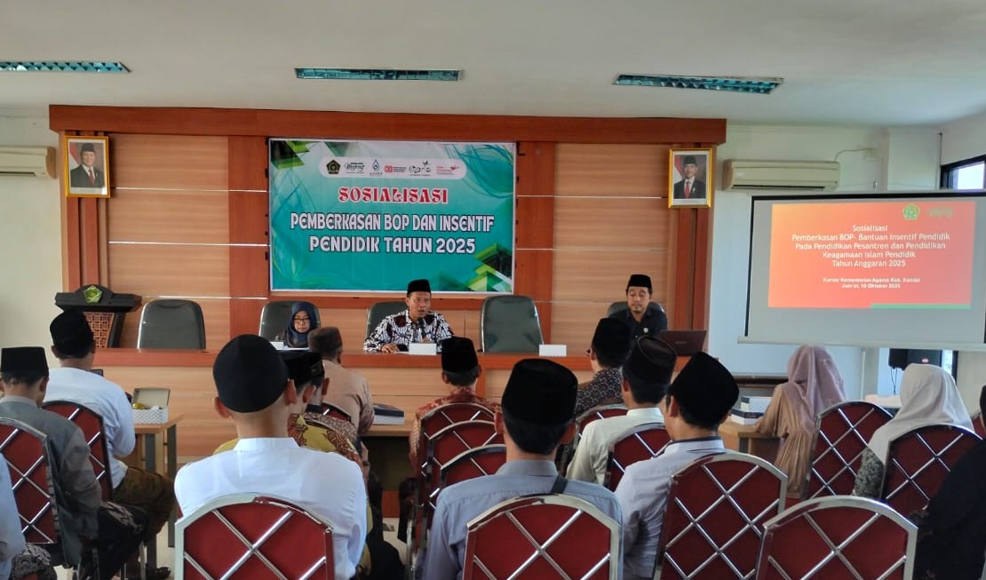 Kendal (Humas) – Pemerintah terus menunjukkan komitmennya dalam meningkatkan mutu layanan pendidikan keagamaan. Melalui Kantor Kementerian Agama Kabupaten Kendal, digelar kegiatan Sosialisasi Pemberkasan Bantuan Operasional Pendidikan (BOP) dan Insentif Pendidik Lembaga Pesantren dan TPQ Tahun 2025 yang digelar di Aula Gedung PLHUT Kemenag Kendal, Jumat (10/10/2025).