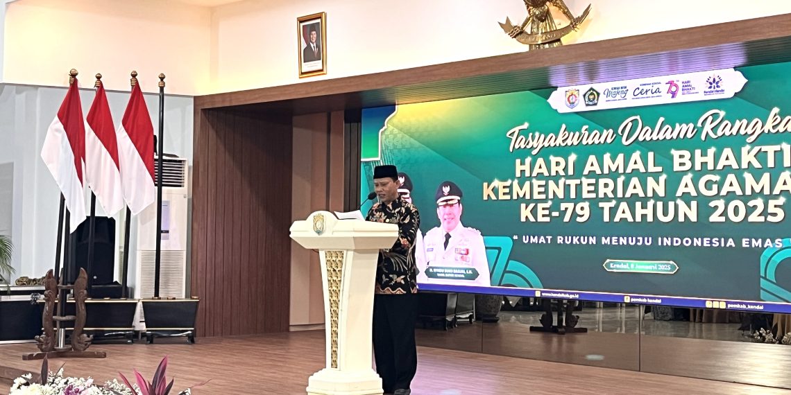 Kendal (Humas) – Diselenggarakan di Pendopo Tumenggung Bahurekso Kendal, acara Tasyakuran menjadi penutup pada rangkaian Hari Amal Bhakti (HAB) ke-79 Kementerian Agama RI yang digelar oleh Kemenag Kendal, Rabu (8/1/2025).